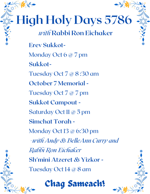 - Please check out the CBS calendar or the eShalom for the latest High Holy Day information. Below is the schedule from the October 2025 High Holy Days: